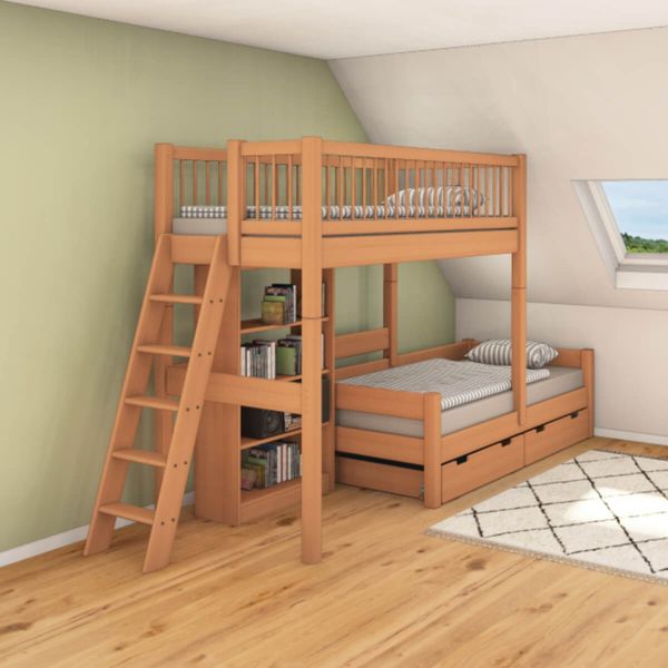 Etagenbett Massivholz Nele - für Dachschräge – Buche