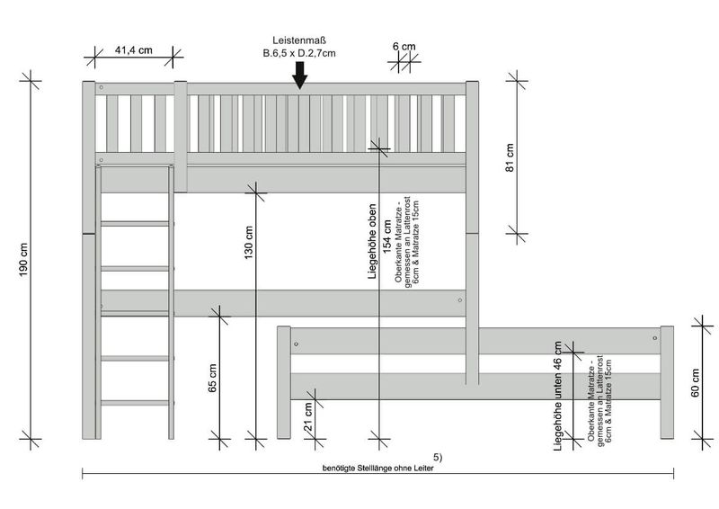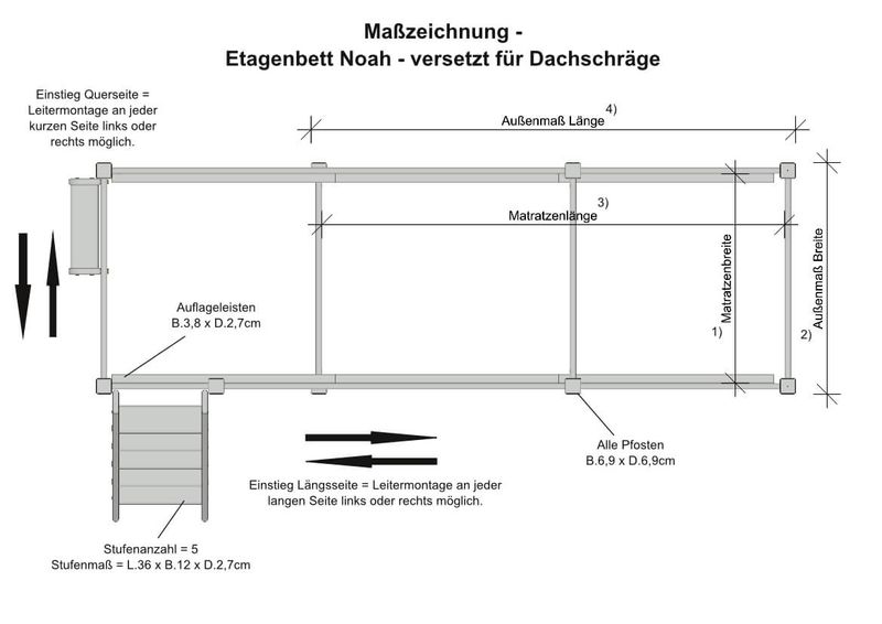 In Kombination mit unseren Roll- oder Gästebettkästen ist eine Montage der gerade Leiter von dem unteren Bett nicht zu empfehlen.