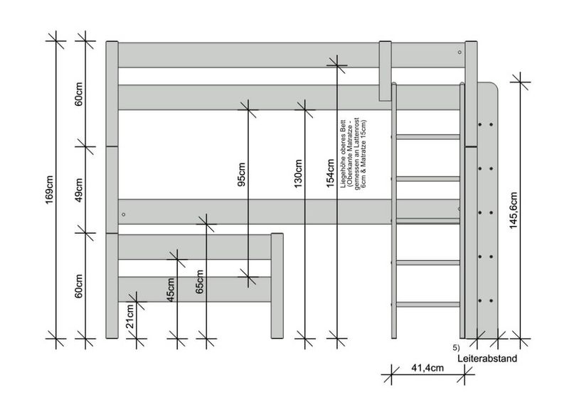 Sofern Sie eine individuelle Sonderhöhe Ihres Etagenbettes wünschen wählen Sie im Auswahlfenster Gesamthöhe bitte "Sonderhöhe" aus und notieren Ihre Wunschhöhe im Kundenwunschfeld an der Kasse. Hierbei verändert sich der Abstand zwischen dem oberen und unteren Bett. Die Leiterlänge passen wir ebenfalls automatisch an.