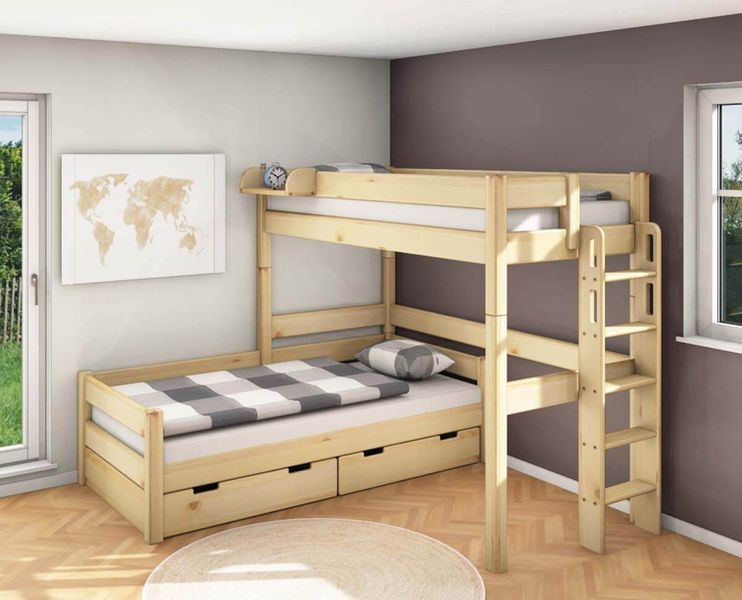 Etagenbett Stockholm 3-1 - massive Kiefer in vielen Farben, Größen, Höhen und Leiterausführungen