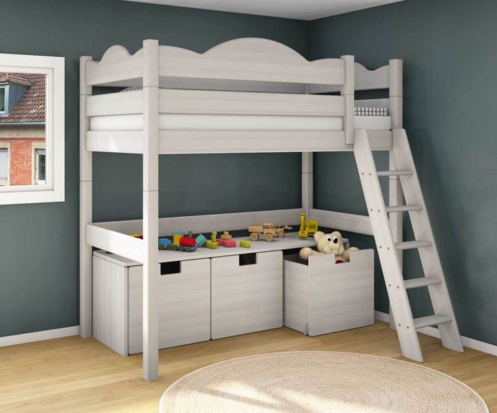 Hochbett Benni - massive Buche in vielen Farben, Größen und Leiter an Längs- und Querseite