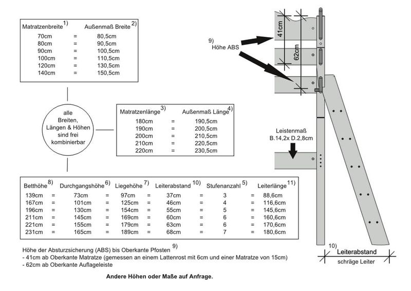| Bettbreite (Auswahl) | 90cm, 100cm, 120cm, 140cm |