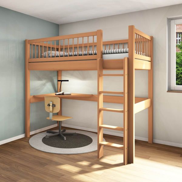 Das Hochbett Nele eignet sich sowohl für Kinder als auch Jugendliche und Erwachsene. Die filigranen schlichten Rundstäbe in der Absturzsicherung wirken zeitlos lassen Raum für individuelle Gestaltung.