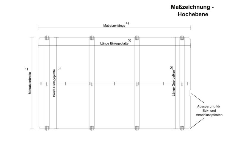 Um die Hochebene auch als reinen Schlafplatz nutzen zu können können Sie die Einlegeplatte ganz einfach entnehmen und einen festen Lattenrostrahmen auf die Querbalken einlegen. Bitte beachten Sie hierbei unsere unten stehenden Anmerkungen unter "Hinweise".