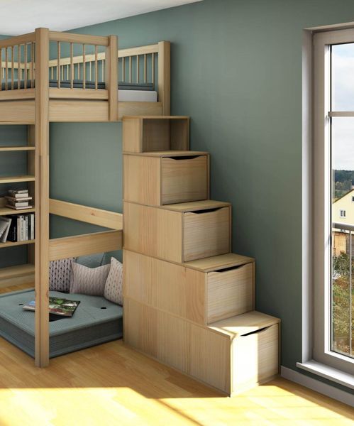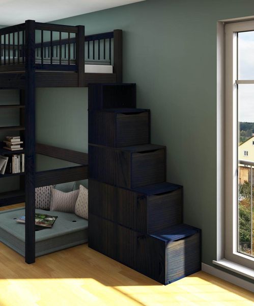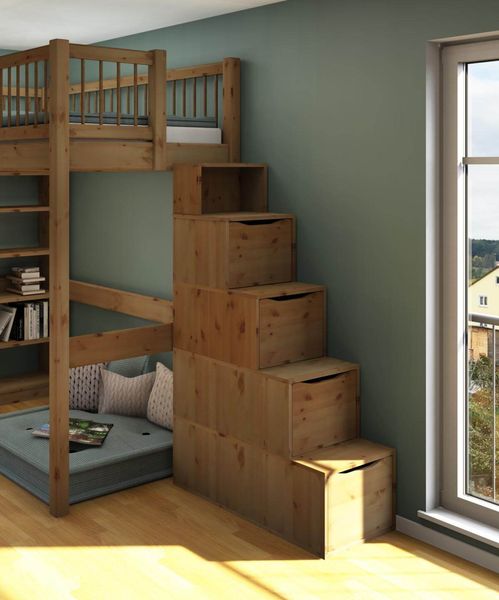 Treppe mit Schubladen für Hochbett und Etagenbett, Dahlhaus, massive Kiefer oder Buche in vielen Farben