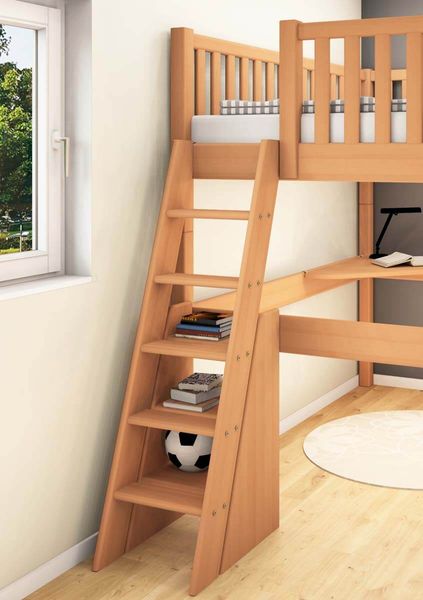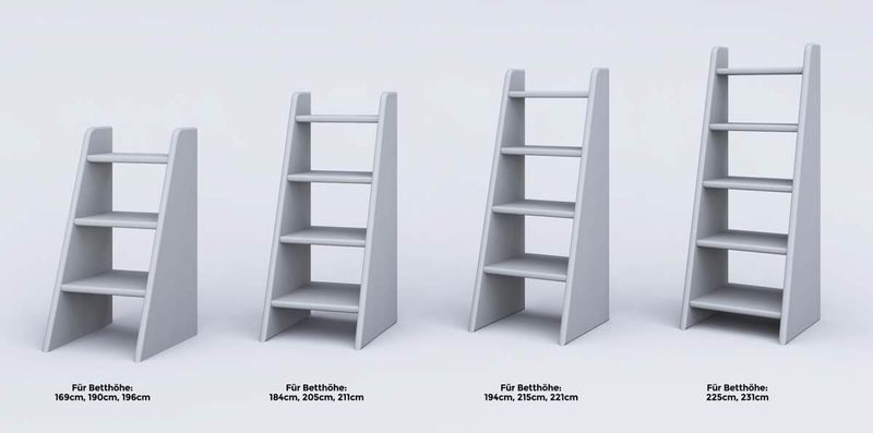 Das Leiterregal passt ausschließlich zu den in unserem Shop bestellbaren Leitern & Betten!