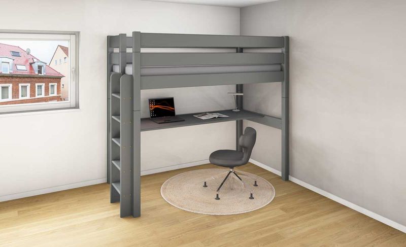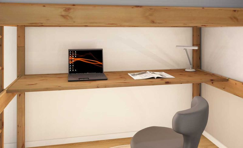 Mit unserer Schreibtischplatte passend zu all unseren Hochbetten, nutzen Sie den entstandenen Platz unter Ihrem Hochbett ideal aus!