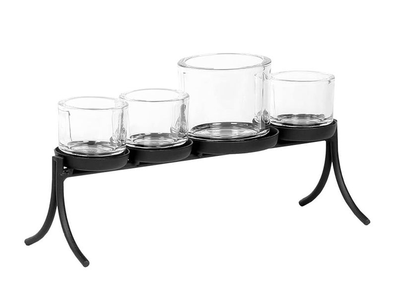 Lieferumfang: Windlicht schwarz inkl. Gläser ohne Dekoration (mit/ohne Kerzen nach Auswahl)