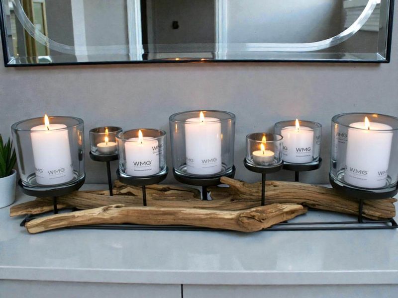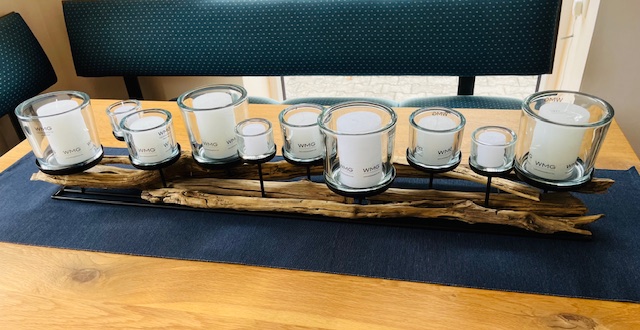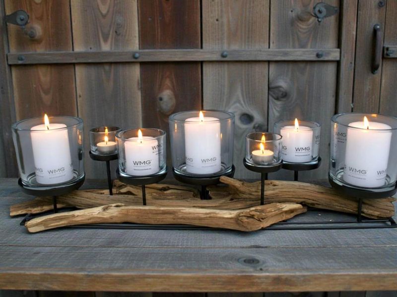 Lieferumfang: Treibholz Windlicht inkl. Gläsern/ Kerzen nach Auswahl