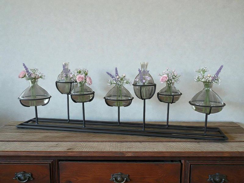 Dieses wunderschöne Vasenhalter ist auf jedem Tisch oder Sideboard der Hingucker.