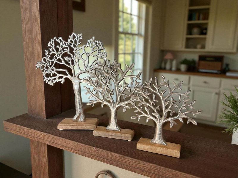 Der dekorative Lebensbaum aus Aluminium und Mangoholz ist perfekt um Ihr zu Hause elegant einzurichten.