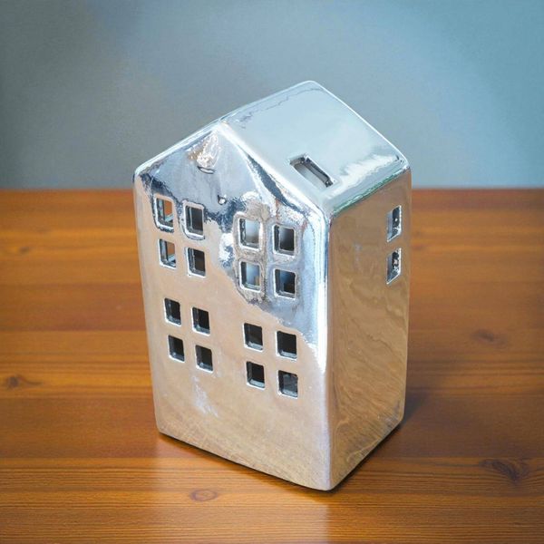 Dekoratives Hauswindlicht aus Keramik zur Platzierung auf dem Esstisch, Sideboard oder der Fensterbank. Die integrierte LED-Leuchte erzeugt eine gemütliche Atmospähre.