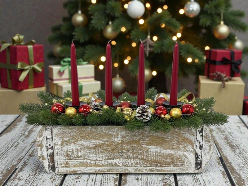 Lieferumfang: Metallgestell auf Holztablett ohne Kerze