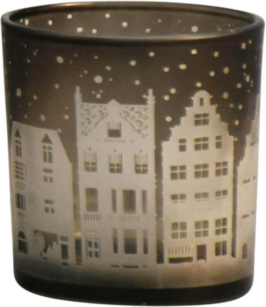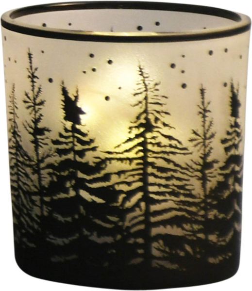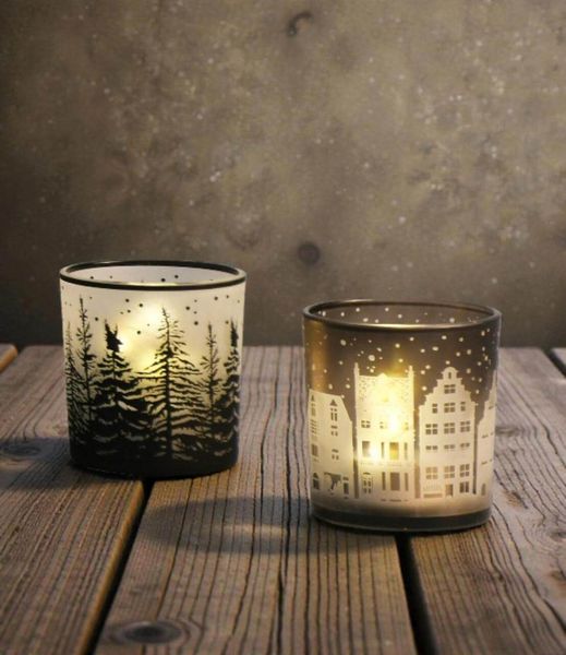 Dekoratives Windlicht aus Glas in zwei Motiven zur Platzierung auf dem Esstisch, Sideboard oder der Fensterbank.