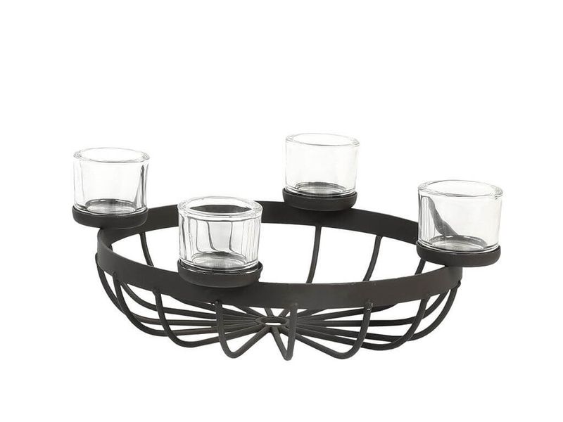 Der Eisenschalenleuchter bietet Platz für 4 Kerzen und Deko im Inneren der Schale.