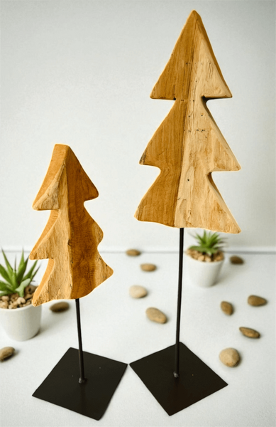 Der Holzbaum aus Teak auf seinem stabilen Metallfuß ist das perfekte Geschenk