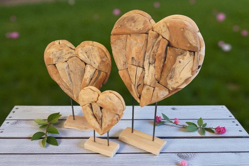 Das Holzherz aus Teak auf seinem stabilen Holzfuß ist das perfekte Geschenk z. B. zur Hochzeit oder zum Geburtstag.