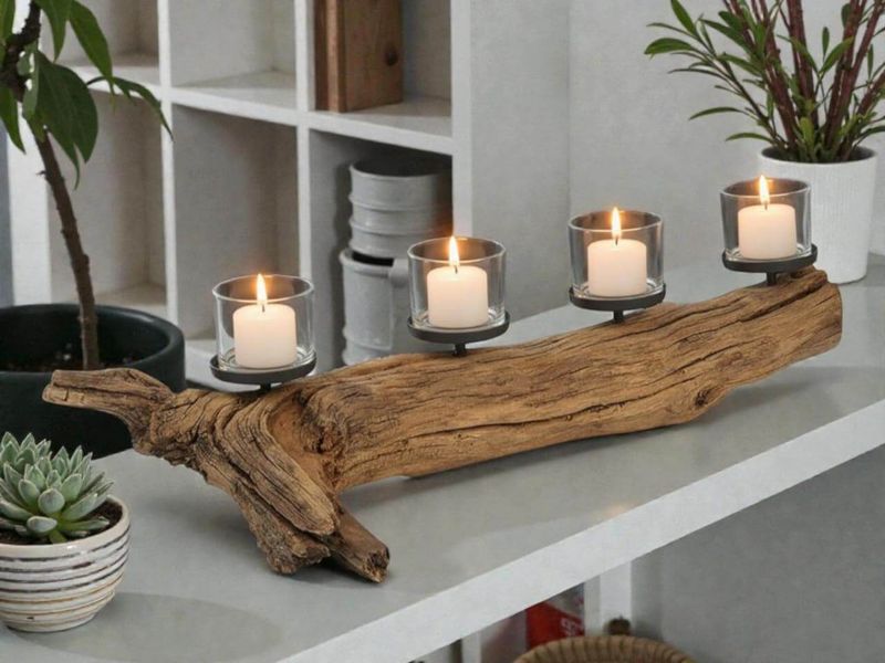 Das abnehmbare Glas welches auf einem Metallfuß steht, eignet sich wunderbar zur individuellen Dekoration. Dadurch ist dieser Holzleuchter von WMG zu jeder Jahreszeit ein Hingucker.