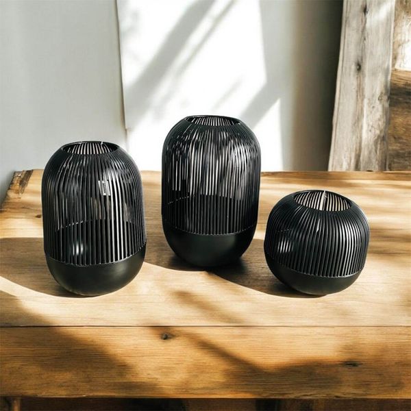 Die moderne Laterne aus pulverbeschichtetem mattschwarzem Metall lässt sich wunderbar in Ihrem Wohnbereich mit Kerzen und Co. herrichten.