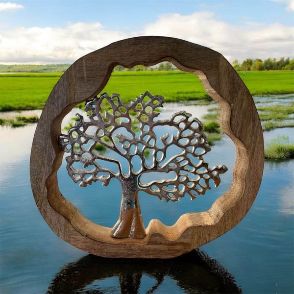 Lebensbaum im Holzring, Aluminium/Mangoholz von formano - Höhe 30 oder 40 cm