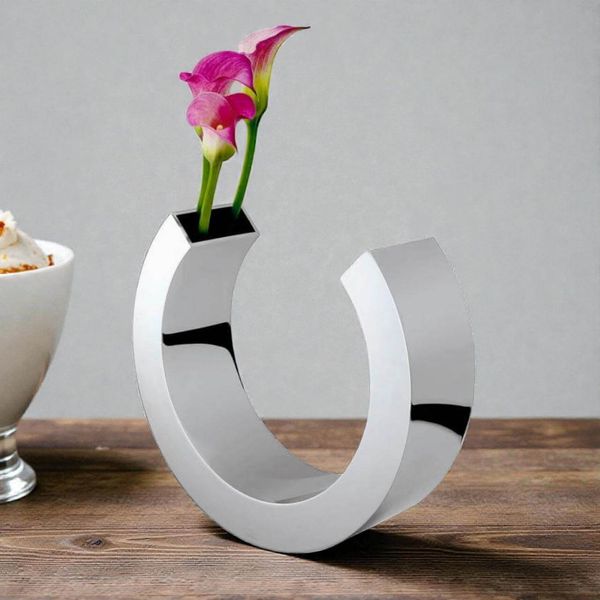 Omega Vase von Philippi - Ø 27 cm - hochglanzpolierter Edelstahl mit zwei Öffnungen