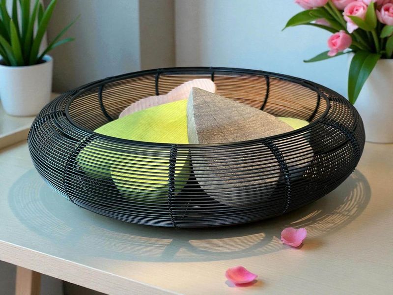 Das dekorative Schale aus pulverbeschichtetem mattschwarzem Metall lässt sich wunderbar in Ihrem Wohnbereich mit Kerzen, Pflanzen und Co. herrichten.